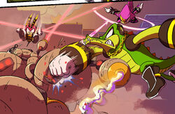 Team Chaotix fighting Eggman's army.