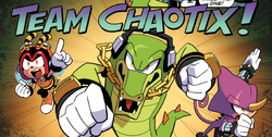 Team Chaotix (チームカオティクス , Chīmu Kaotikusu ? ), also known as the Chaotix Crew,[2] and just Chaotix (カオティクス , Kaotikusu ? ), are a group that appears in the Sonic the Hedgehog series. They are a trio of detectives-for-hire consisting of Vector the Crocodile, Espio the Chameleon and Charmy Bee who run the Chaotix Detective Agency.